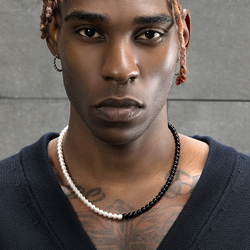 Pearl Black Onyx Stitching Necklace